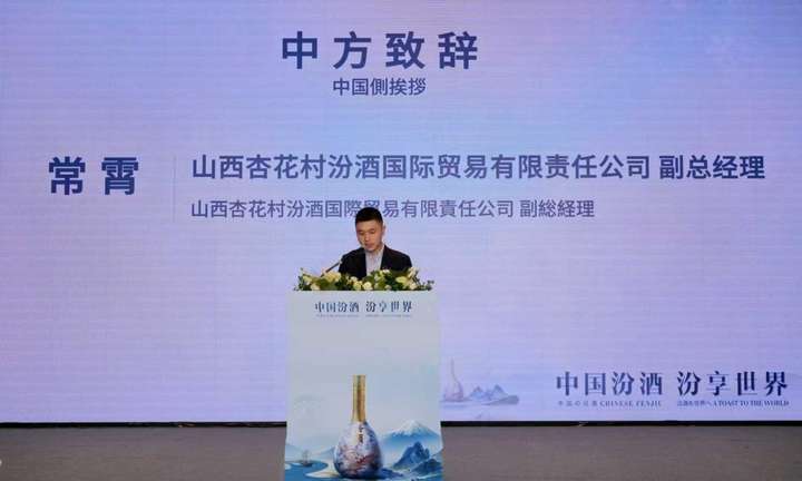 山西杏花村汾酒国际贸易有限责任公司相关负责人,回顾了汾酒跨越六千年的酿造史与百年品牌辉煌,并阐述了汾酒借力大阪世博会这一国际平台,走向世界、深化文化交流的决心。大阪观光局统括官田中嘉一先生则在致辞中盛赞汾酒作为文化使者的角色,其融入世博舞台具有重要意义,更促进了日中乃至全球范围内的友好往来与文明互鉴,期待以酒为媒,深化两国人文与经济合作。