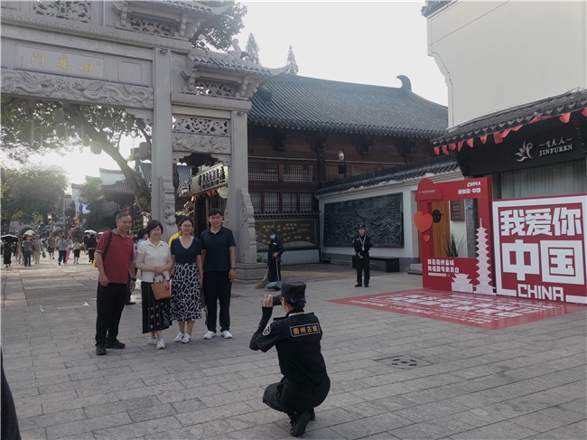 假期第二天上午,在衢州古城水亭门历史文化街区,景区安保人员张蕾和叶芯怡在入口处一边维持秩序,一边热情地为游客指路、拍照、推荐美食。期间,张蕾注意到一位游客正蹲着为家人拍照,她主动上前询问是否需要帮忙拍摄,得到肯定回应后,她顺利为这家人定格了美好瞬间。“旅途中拍全家福、旅行照时,常需要旁人搭把手,这对我们来说是举手之劳。”张蕾笑着说。