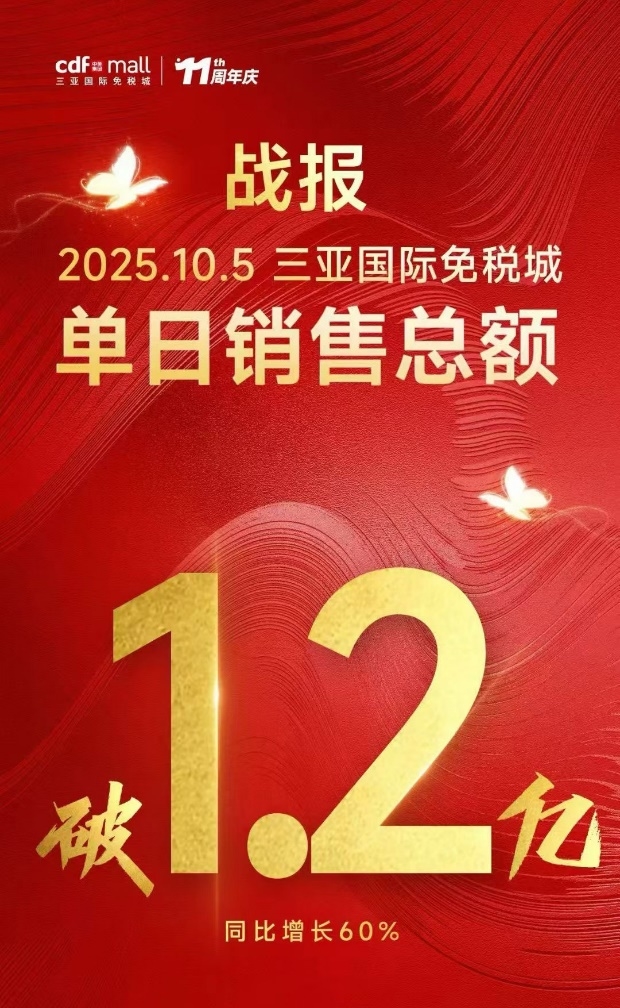 随着中秋、国庆“黄金周”的持续推进,海南作为国内热门旅游目的地的热度不断攀升,阳光沙滩、椰风海浪吸引着大批国内外游客前来打卡的同时,一场融合全球时尚潮流与沉浸式文旅体验的免税盛宴也在如火如荼上演。10月5日,中免集团旗下cdf三亚国际免税城单日销售额突破1.2亿元,亮眼的成绩不仅印证了中免集团围绕“首店经济、新品首发、全域营销、服务升级”四大维度同步发力所取得的显著成效,更凸显出了“免税+文旅”深度融合下海南免税消费市场的强劲活力。