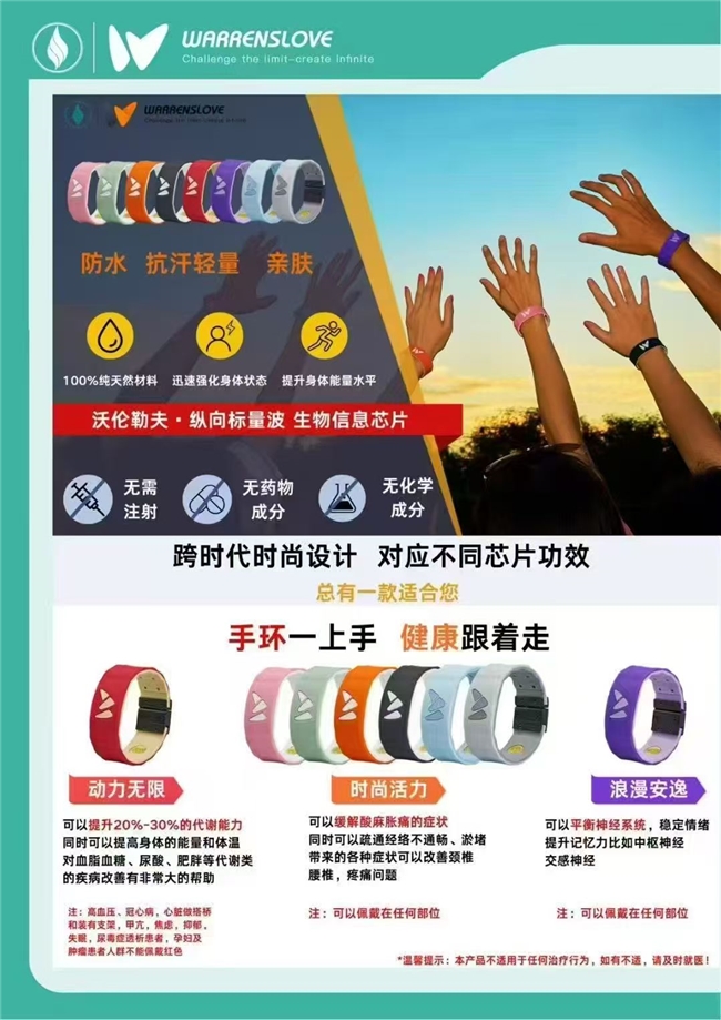 卫康生物集团成立于1999年4月26日,是一家以大健康产业为核心竞争力的国家高新技术企业。沃伦·勒夫量子环已经通过FDA(美国食品药品监督管理局)+药监局双认证,意味着产品符合美国最高的安全、卫生、性能等标准,可以确保消费者使用产品的安全性,尤其是在食品、药品、化妆品和医疗器械领域。同时量子能量手环具有合法合规的专利认证和量子检测报告,通过高频振动激活细胞线粒体,增强代谢,拥有调节血压、净化血液、缓解焦虑、提升免疫力等功效。