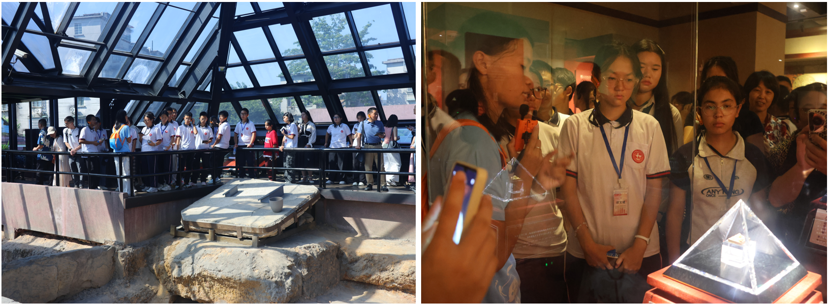 转战广州后,同学们继续感受别样的城市风采。在南越王博物院,他们以“侦察员”身份深入岭南地区规模最大、保存最完好的汉代彩绘石室墓。透过“文帝行玺”金印、丝缕玉衣等千余件珍贵文物,一幅两千年前岭南地区与中原文化、海外文明交融共生的生动图景徐徐展开,让大家对早期“海上丝绸之路”的繁华有了初步认知。