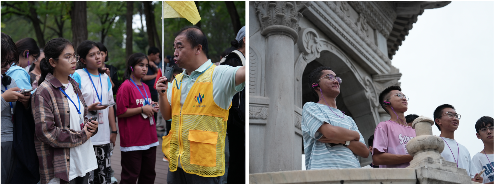 同学们的第一课从圆明园开始。站在断壁残垣之间,聆听研学导师讲述“万园之园”曾经的辉煌与近代的伤痛,课本上的文字化为真切的视觉与心灵冲击。历史的屈辱激发了同学们强烈的爱国情怀,也让他们更深刻地理解了“落后就要挨打”的历史教训与民族复兴的时代责任。