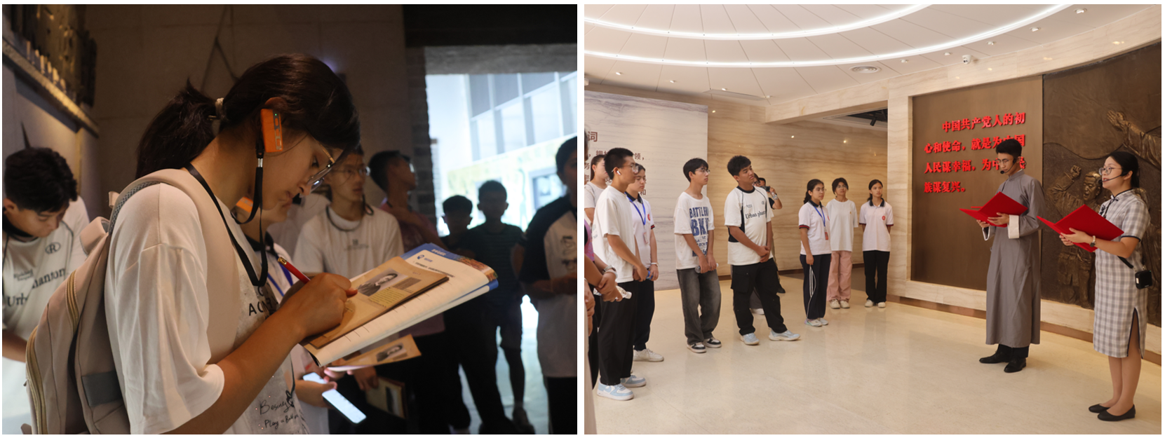 在辛亥革命纪念馆,同学们化身“民国报人”,感受各族人民共御外侮、共赴国难的民族精神;在中共三大旧址,同学们重温了在激荡革命岁月,共产党人的拳拳爱国心和大无畏的革命精神。