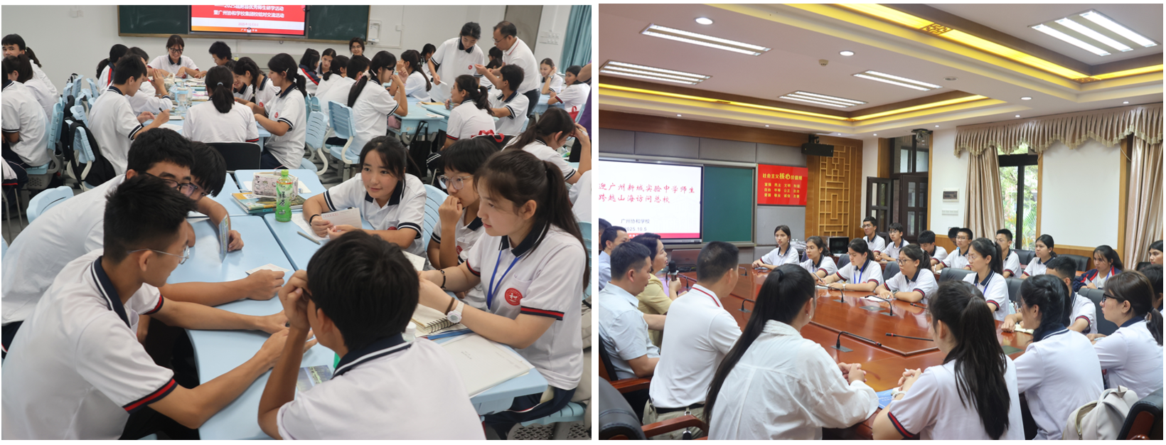 活动第五天,同学们走进广州协和集团旗下学校,与广州本地学生开展结对交流。双方共上一堂课,体验不同的教学风格;在“手拉手文体汇演”中,新疆学子带来了充满民族风情的歌舞,广州同学展示了岭南文化的独特魅力;绿茵场上的友谊足球赛,更是将现场气氛推向高潮。笑声与汗水冲破了地域隔阂,真挚的友谊在彼此心中萌芽。