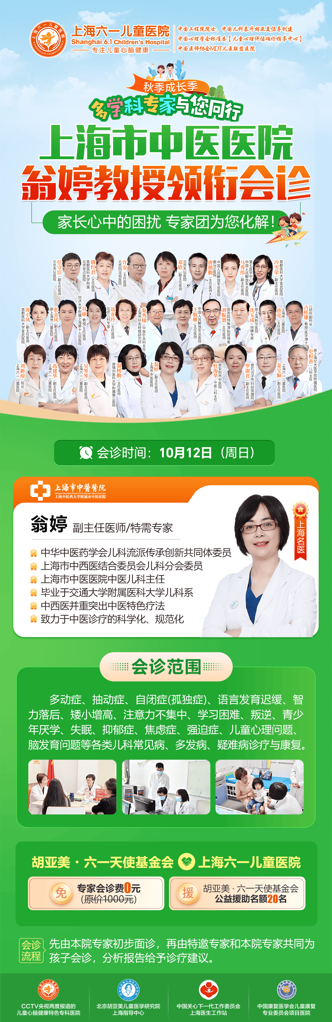 【重磅加场】假期后儿童发育与行为问题高发,10月12日上海市中医医院翁婷教授再次亲临会诊,迫切需求热度不减!假期后|重点会诊人群