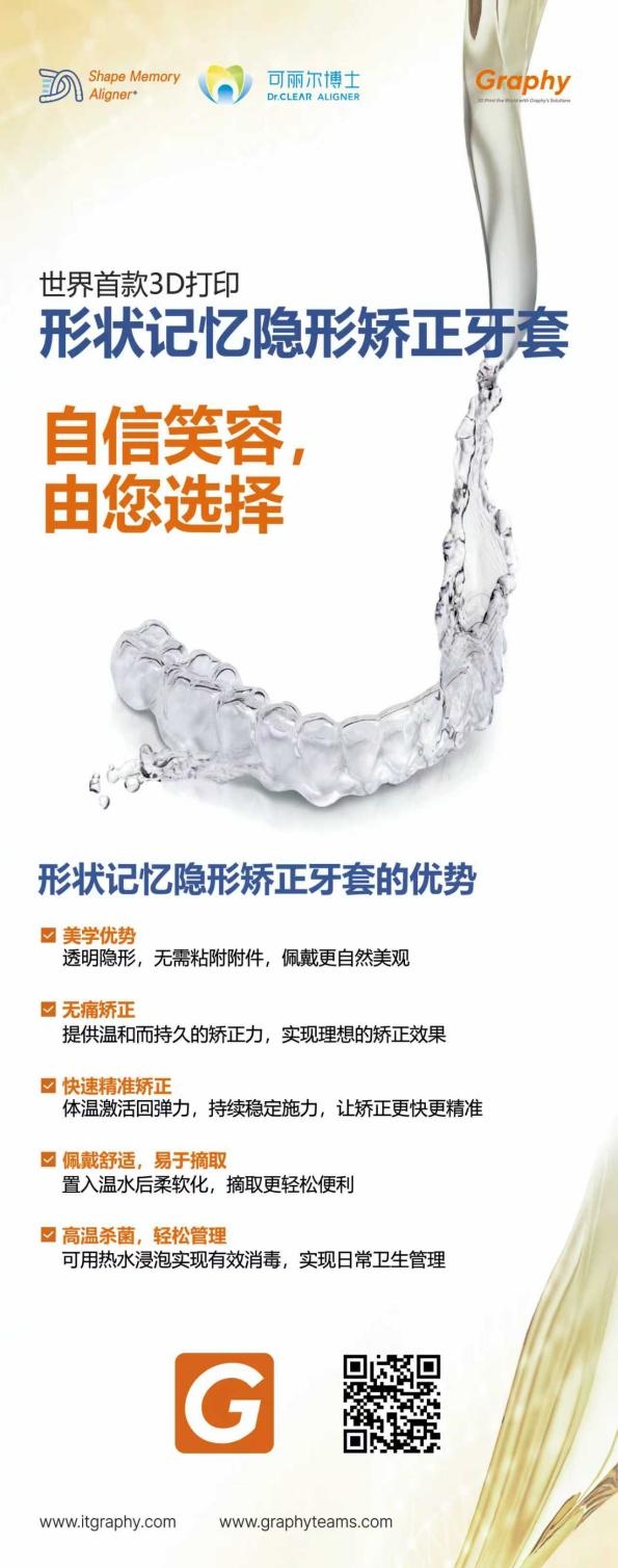 Graphy公司作为韩国领先的3D打印材料制造商,双方战略合作的这款全球首款直接3D打印制成的形态记忆矫治器,能够通过体温激活产生持续轻柔的矫治力,显著提升舒适度;借助直接打印技术实现牙套区域化精准控厚,达成"每颗牙齿精准施力"。