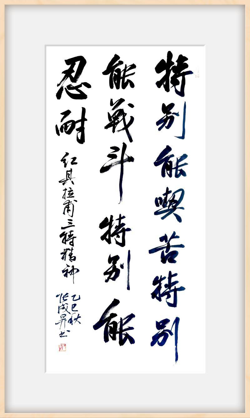 此次展出的近40幅书法作品,以“红色国门”为精神内核,以“边检精神”为创作骨架,将边防民警的忠诚坚守、国门的庄严神圣与国庆的喜庆氛围,凝练于尺素翰墨之间。笔墨流转处,映照着红色国门的峥嵘岁月;字句铿锵间,激荡着新时代的奋进强音。观众在淡淡墨香中,得以读懂红其拉甫边关的赤子之心,触摸“红色国门”背后炽热而坚韧的精神脉搏。