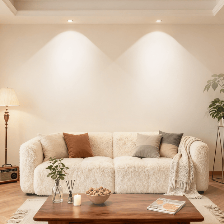 客厅不用再像装普通筒灯那样密密麻麻,因为三思星曜金属筒射灯有 1.5 倍高亮效果,光线比普通筒灯更足,同时还能像射灯般打出边缘清晰的 “小山丘” 光斑 —— 电视墙不用额外装射灯,三思筒射灯就能兼顾均匀照明与氛围营造,既省了安装成本,又让客厅光线不杂乱。
