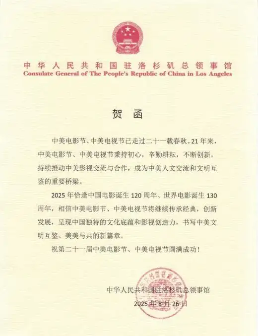 “2025年,恰逢中国电影诞生120周年、世界电影诞生130周年,本届中美电影节、中美电视节以“光影无界 共映未来”为主题,必将在中美人文交流与文明互鉴中发挥更重要的桥梁作用。