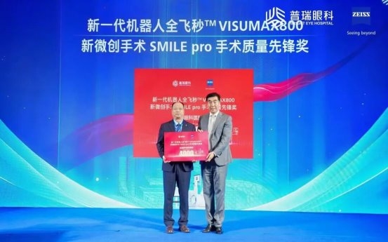 今年,普瑞眼科迎来成立20周年的重要时刻,屈光专科亦屡创佳绩。近日,蔡司公司不仅授予普瑞眼科“全普瑞全飞秒TM微创手术示范单位”称号,还为集团颁发了“新一代机器人全飞秒TM VISUMAX800新微创手术SMILE pro手术质量先锋奖”及“SMILE pro手术量突破4000例”的奖牌认证——这是对SMILE pro技术卓越性能的肯定,更是普瑞眼科屈光专科20年来坚守技术创新与医疗匠心的生动见证。