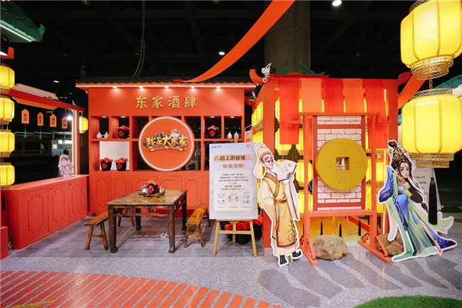 本次益世界展台以“益城月下 庙趣共赏”为主题,设计以国风为主,巧妙融合《我是大东家》的古代市井商贸元素与《这城有良田》的风雅庭院景致。让玩家既可化身东家经营酒肆,又可化身城主过上有城有田的休闲生活。从视觉到场景的全面古风沉浸,为玩家构建了一个暂离现实的东方美学空间。