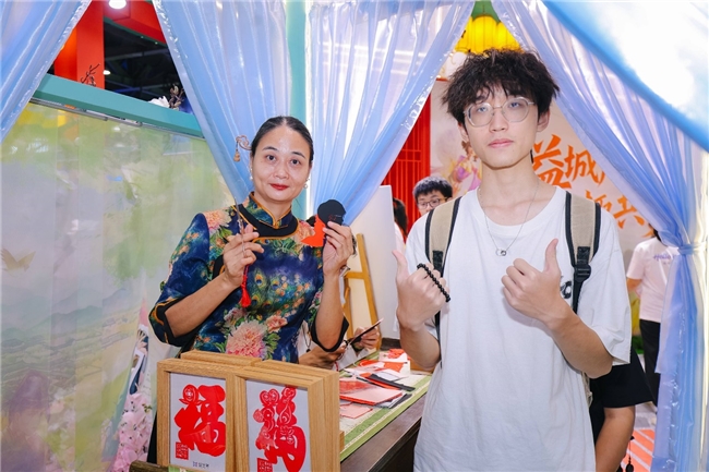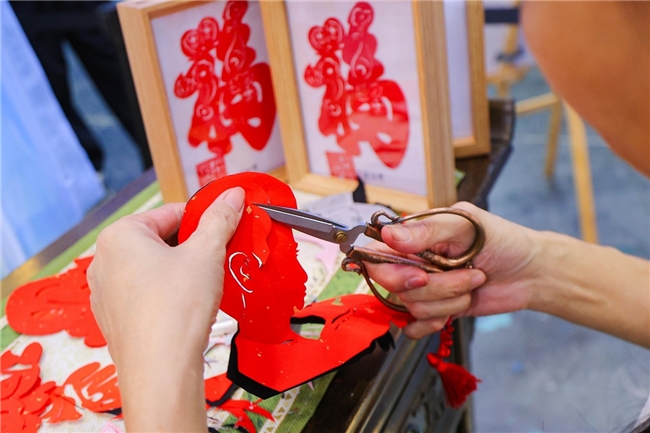 本次益世界展台的一大亮点,是特别设立的非遗互动体验区。益世界邀请到广州剪纸项目代表性传承人、何氏非遗剪纸第六代传人及第七代传人亲临现场。此外,还邀请了书法老师即席挥毫,现场赠韵。