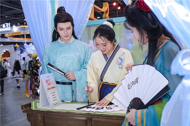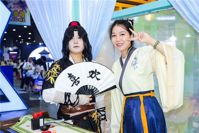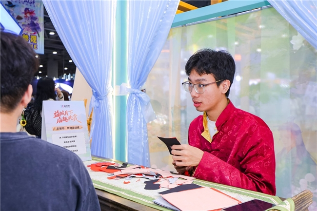 玩家凭特定兑换券可获得专属剪纸纪念品或手书折扇,近距离感受岭南非遗技艺与国韵雅趣的魅力。非遗体验区前排起的长龙,是国风与二次元在益世界展台破圈共融。