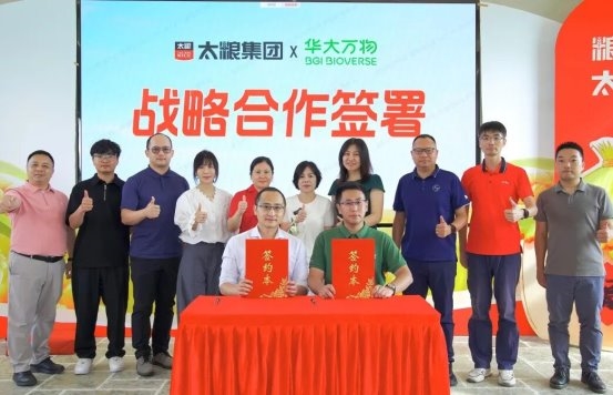随后,太粮集团高级副总裁熊智飞先生、华大万物多年生事业部总监于泽先生等双方代表共同上台,在现场嘉宾的见证下,郑重签署战略合作协议。