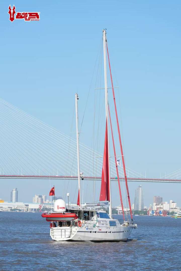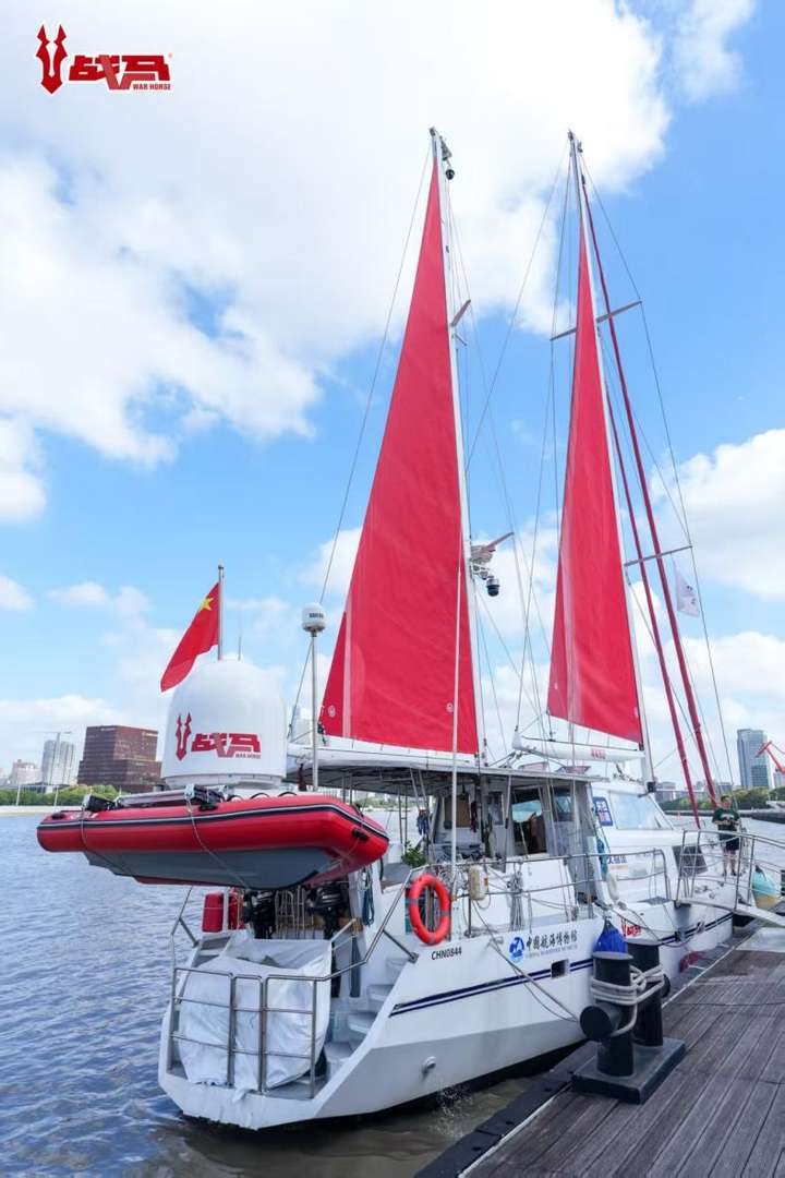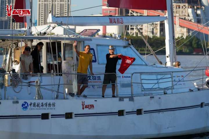 10月10日上午,上海白莲泾码头,翟墨及其船员接受了来自社会各界的美好祝福,上南五村小学学生为他们献上了鲜花,在上海海事大学的管乐队的鼓乐声中,嘹亮的汽笛响彻整个码头,“翟墨1”号扬起红色的风帆,沿黄浦江徐徐驶向大海,正式开启这段环绕地球最南端大陆的史诗般航程。