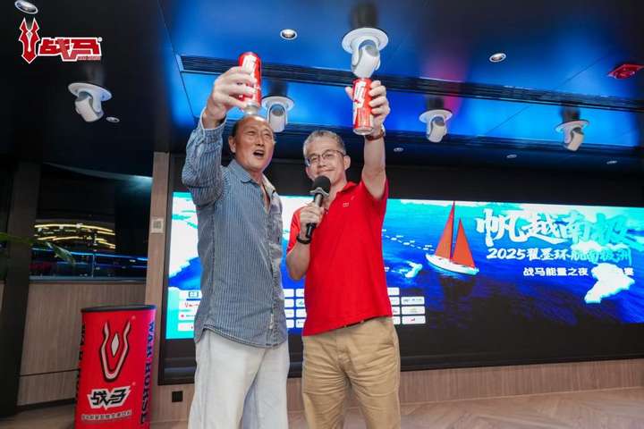 战马作为民族能量饮料品牌的代表,其勇敢无畏,乐观积极的品牌态度与翟墨的航海精神完美匹配。作为本次航行活动的官方合作伙伴,战马将为所有船员全程提供能量补给。10月9日晚,战马能量之夜暨《帆越南极2025翟墨环航南极洲》启航欢送晚宴在黄浦江游船上盛大举行。华彬快速消费品集团上海分公司总经理翁海新先生特意将一份战马能量礼盒赠予翟墨船长,祝愿此次航行活动圆满顺利。
