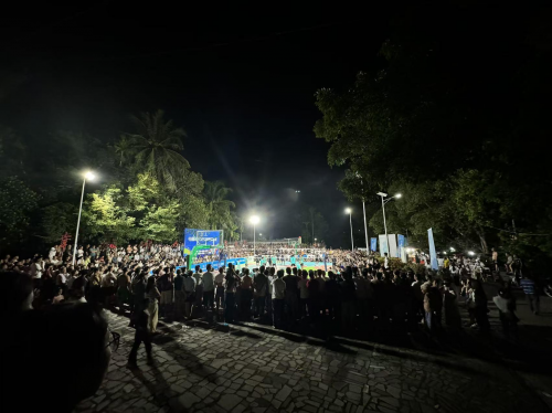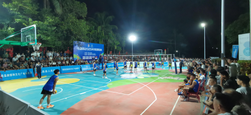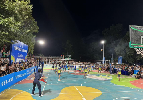 球场喝彩声划破青梯村寂静的星空。循声望去,赛场被围得水泄不通,花坛、矮墙、三轮车等一切稍高的地方都站满了观众。现场观众为每一次精彩的进攻和拦网欢呼,也为球的每一次落地感到惋惜,场下的热烈氛围让球员们如有神助。