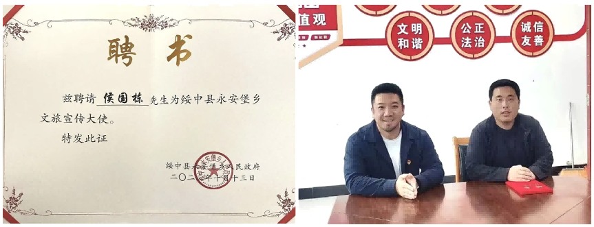 2023年,侯国栋校长受绥中县永安堡乡人民政府特别邀请,正式担任永安堡乡文化旅游宣传大使。他长期致力于艺术教育与音乐创作,通过艺术创作和演出,服务地方发展的实践,足迹遍布各地。