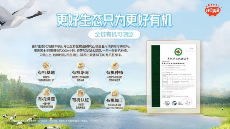 此外,秋田满满与黑龙江省农科院合作,精选云鹤渔米生态有机大米,特别添加有机胚芽米。胚芽作为大米中的“营养黄金”,约占一粒米66%的营养成分,是优质的高密度营养主食来源。