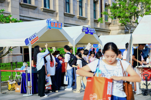 在深圳金融教育骑兵团30家机构设立的知识宣传展位前人头攒动,为学生提供一对一的金融咨询服务,耐心解答“金融反洗钱”、“正规保险产品的选择”、“个人征信维护”等实际问题。互动区气氛热烈,学生们在参与游戏闯关的同时,掌握关键金融知识,不少同学在完成挑战后主动领取宣传手册,表示将进行更深入的学习。