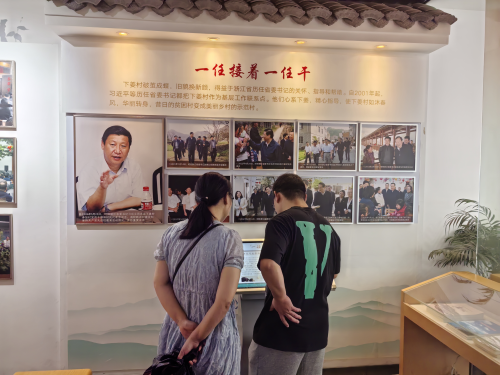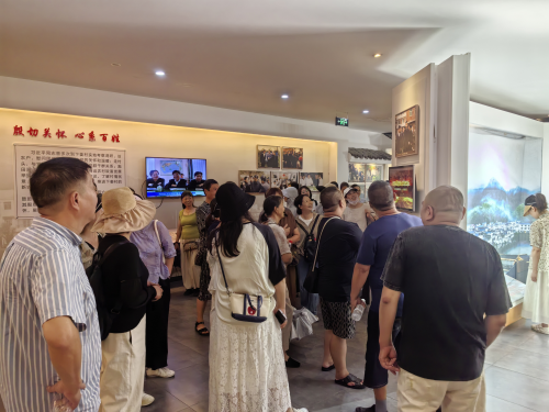 走进下姜村,错落有致的民宿、清澈见底的溪流、充满乡土气息的文创工坊映入眼帘。学员们首先探访了“下姜村乡村振兴展示馆”,通过老照片、数据图表和实物展品,系统了解下姜村从“穷山村”到“全国乡村振兴示范村”的蜕变历程——曾经人均年收入不足3000元,如今通过发展生态旅游、特色农业,2024年常住居民人均可支配收入突破5万元。