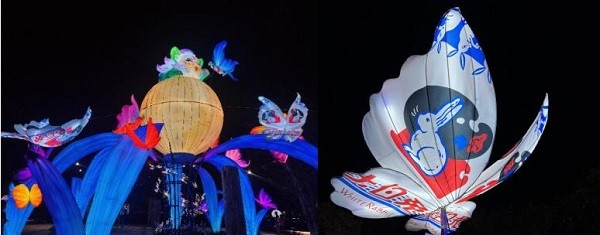 花灯将大白兔经典奶糖造型转化为灵动蝶身,翅膀则由标志性的红蓝白糖纸拼接而成,既保留品牌记忆点,又通过光影艺术传递“破茧成蝶”的焕新意象,以视觉语言串联起中秋团圆与大白兔“快乐分享,温情共享”的品牌主张,吸引众多游客驻足合影。