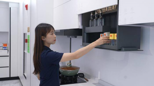 活动现场的厨房智慧收纳体验区成了人气焦点。“以前拿吊柜顶层的碗碟总要踩凳子,现在碰一下按钮就能自动升降,太省心了!”体验完智能升降吊柜的李女士难掩惊喜。除了智能升降设备,轻喜到家旗舰店内的多个实景展示区更让消费者沉浸式感受变革:针对5㎡小户型厨房推出的三大收纳改造套餐,从4999元的焕新版到19999元的AI收纳系统优化版,精准适配不同家庭的预算与需求。活动首日,㎡焕新套餐就接到十余个订单,高端AI收纳系统更吸引大批用户咨询。
