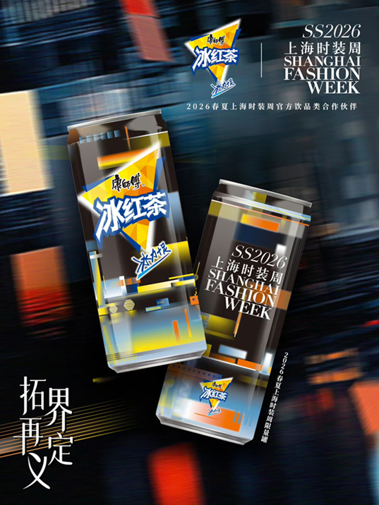 康师傅冰红茶作为本季上海时装周官方饮品类合作伙伴,以「痛快能量」与「潮酷基因」打造时装周定制罐,同步亮相秀场,其独特视觉设计迅速成为现场焦点,成为最受欢迎的打卡符号之一。