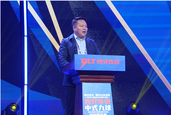宣传片播放结束后,多位领导嘉宾先后登台致辞,为赛事送上寄语。山东鼎冠体育产业集团副总裁于金魁向全场来宾致以热烈欢迎,他表示,本届赛事 200 万冠军奖金静待归属,中式九球正以 “源自中国、影响世界” 的姿态书写新篇章,这与鼎冠 “专注、专业、追求极致” 的品牌理念高度契合。他提及,鼎冠通过全国战略布局、标准化运营,携手赵汝亮、杨帆等冠军球员构建 “赛事 — 人才 — 门店” 生态闭环,此前杭州 “鼎冠杯” 的成功已印证模式价值;此次济南站,鼎冠派出赵汝亮、杨帆等主力阵容,期待将冠军荣耀留在此地。最后,他感谢各方支持,预祝赛事圆满、选手赛出风采。