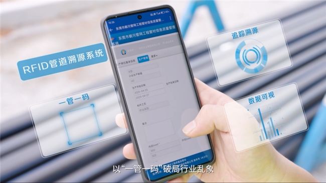 当前,在科技革新与政策推动的双重驱动下,水利行业正逐步迈向智慧时代。日丰积极探索数字化转型之路,将数字技术深度融入管网的研发、生产、管理和服务全流程。为解决传统管网工程中普遍存在的管材生产出入不明、质量责任追溯困难等痛点,日丰联合长江设计集团、三和软件主编《给水排水用管材及管件质量数字化管理技术要求》,在行业内率先规模化推广应用RFID数字化管道溯源系统,以三大核心价值,实现管道追本溯源,提高水务工程监管水平: