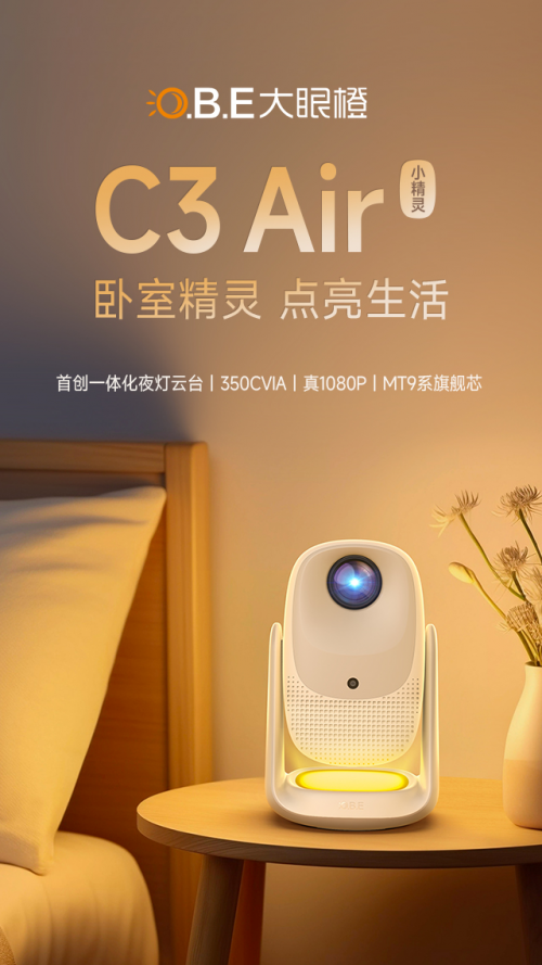 宿舍空间逼仄、预算有限、作息各异,选投影就得“小而精”。大眼橙C3 Air作为百元级卧室投影代表,从设计到性能都直击大学生核心需求,完美适配宿舍场景:
