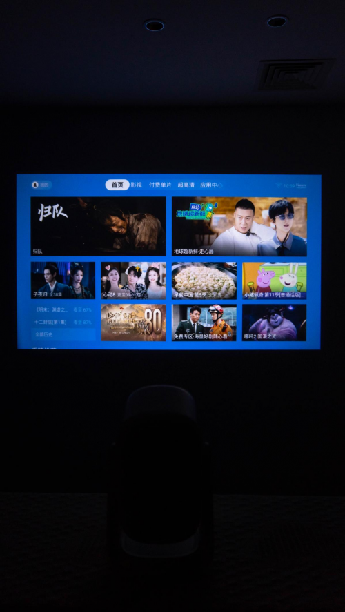 更贴心的是智能调节功能:秒速自动对焦+自动梯形校正,不小心碰到机器也能快速恢复清晰画面,不用蹲在地上手动调试;还支持智能避障、自动入幕,墙面有插座、盆栽也能自动避开,宿舍随便摆都能出好画面。