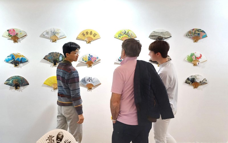 嵩嶋画廊在展览中将日本京扇工艺与中国书画艺术融为一体,吸引国际旅客驻足欣赏。(图/Kasashima Gallery)