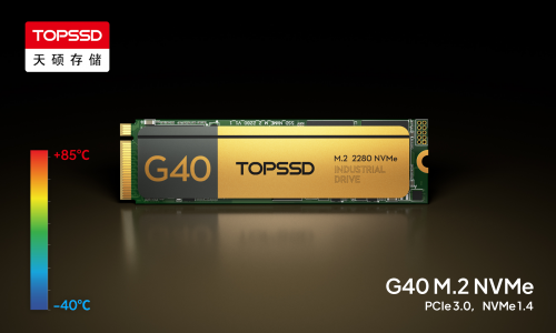 天硕工业级SSD固态硬盘从次宽温到超宽温的可靠性解读天硕G40 Pro M.2 NVMe工业级SSD以自研PCIe Gen3x4主控+100%纯国产元器件实现了3600MB/s高速读取,-40℃~85℃的超宽温域稳定运行;以PLP掉电与固件协同保护全盘,支持智能软销毁功能。天硕(TOPSSD)工业级固态硬盘满足工业级抗振耐冲击标准,拥有200万小时MTBF高可靠认证及国军标GJB质量管理体系背书,精准契合国产化存储对高性能、高可靠、高耐用的严苛需求。
