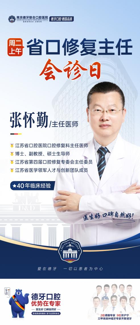 好消息!国家二级口腔专科-南京德牙联合口腔医院修复科主任、原省口修复科主任-“张怀勤教授修复主任会诊日”即将开启!
