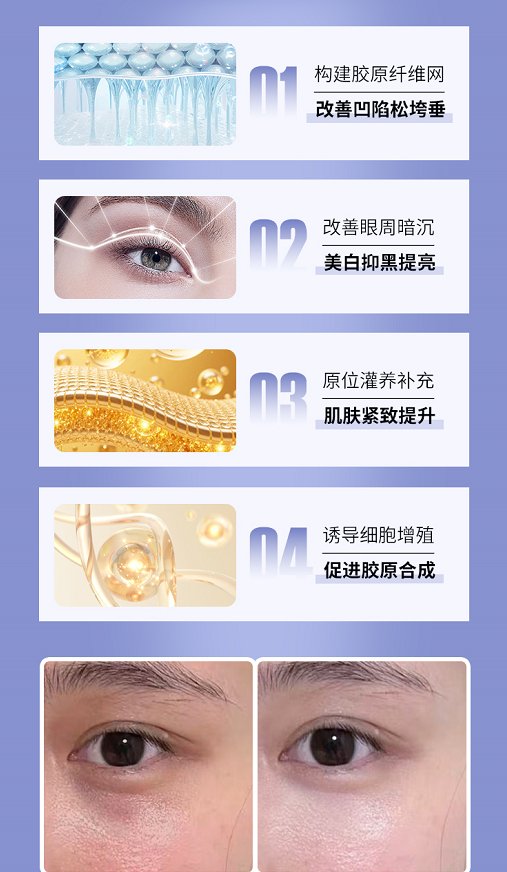 对于色素型黑眼圈,陶主任推荐使用胶原蛋白类填充剂。胶原蛋白为白色,具有一定的遮盖力,能够有效改善色素沉着。注射时,医生会选择皮下层、眼轮匝肌上层、眼轮匝肌下层及骨膜层进行精准注射,以淡化色素,均匀肤色。