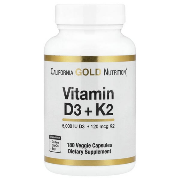California Gold Nutrition, 维生素 D3+K2(MK-7)素食胶囊,180粒