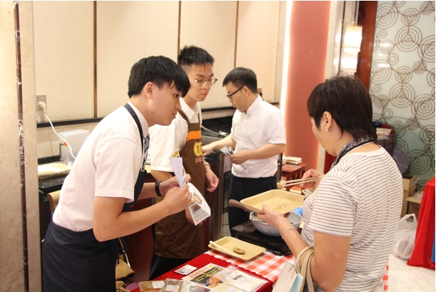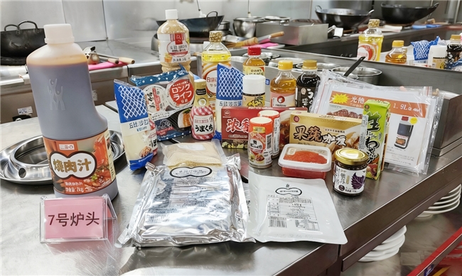 日式调味品体验展示区集中呈现了本次大赛赞助商产品,分别有食研食品(中国)有限公司、宝酒造食品有限公司、大连三岛食品有限公司、杭州丘比食品有限公司广州分公司、上海幸阳食品有限公司,展示了沙拉酱、照烧酱、味醂、鱼籽、烧肉汁等近二十款特色产品,观众可现场体验日式调味品与中式食材的搭配体验;