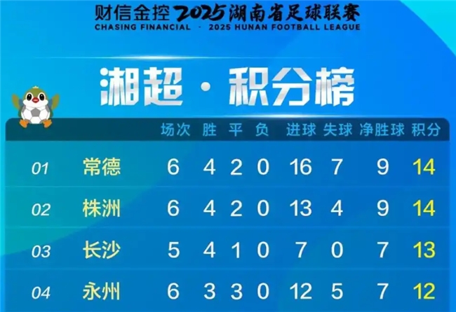 “湘超”常德、株洲、长沙、永州暂列积分榜前四位(截至10月18日)