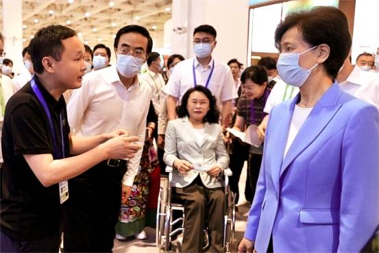 中国残联副主席、副理事长李东梅莅临宜生无忧展区参观交流并合影。