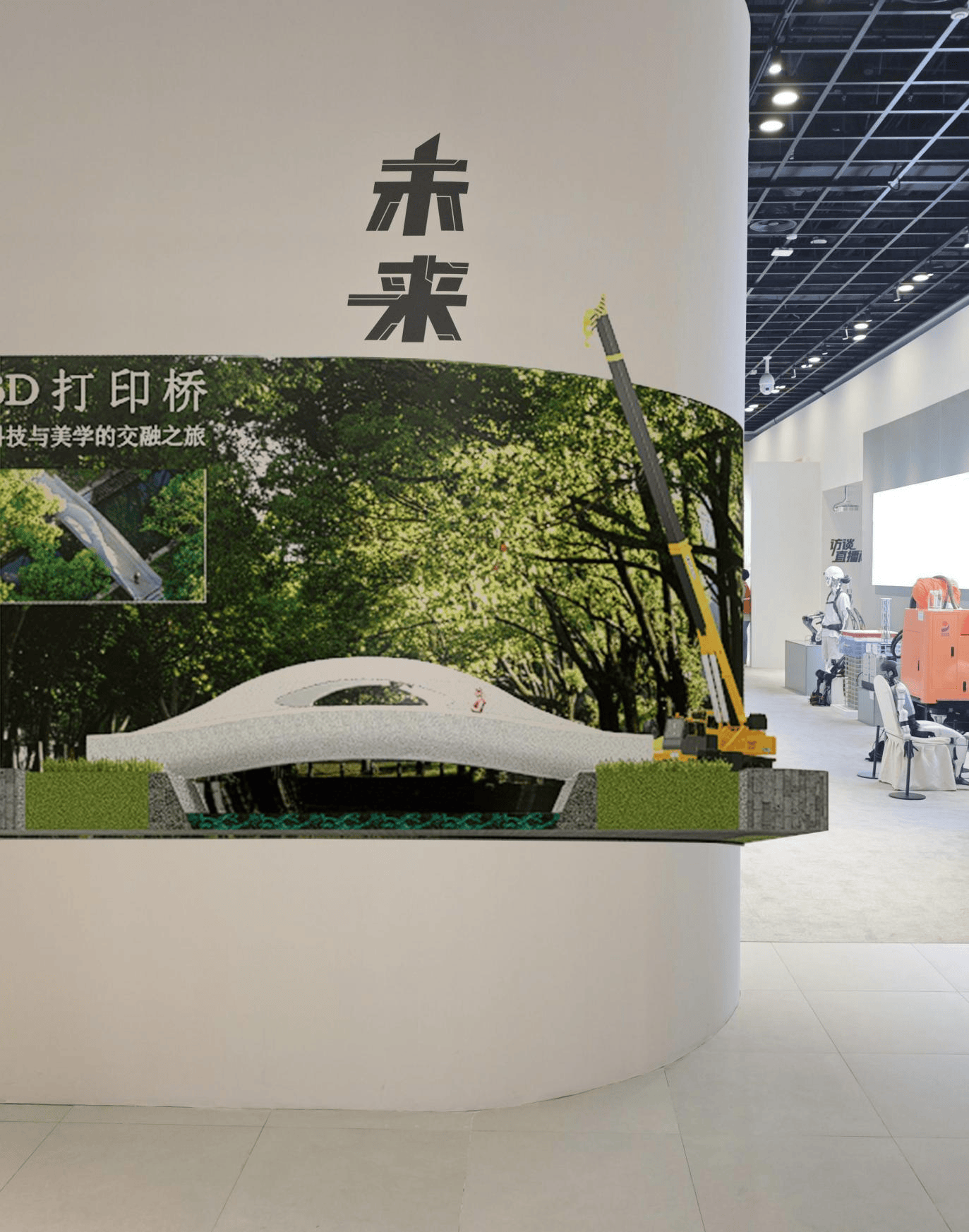 本次“好房子”展中,多项智能建造创新成果集中登场。数字化、装配式建筑等创新科技产业吸引了许多观众的视线。浙大设计院的3D打印桥、紫金院区B1楼作为行业技术创新标杆性项目,其建筑模型也亮相展区三。