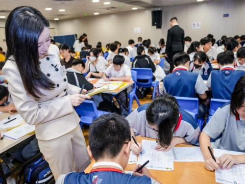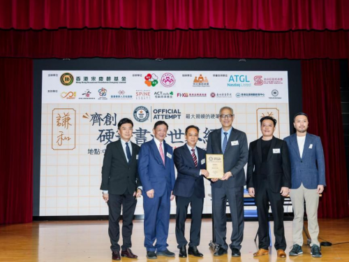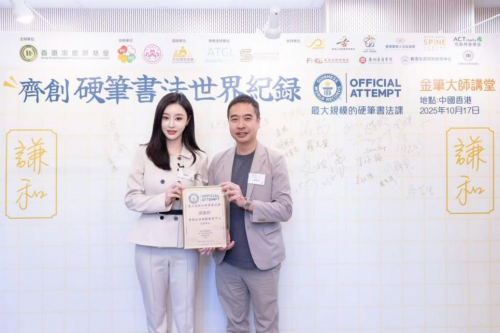 2025年10月17日,梁显利油麻地社区中心热闹非凡,一场洋溢着文化气息与青春活力的“金笔大师讲堂 —— 齐创硬笔书法世界纪录”活动在此盛大举行。该活动由香港宋庆龄基金、We Like Hong Kong、沪港妇女会主办,香港民政事务总署协办,香港生涯规划教育中心等单位积极支持。来自香港油尖旺区多间中小学的 291 名学生齐聚一堂,成功挑战 “最大规模硬笔书法课” 健力士世界纪录™,为庆祝祖国成立76周年献上了一份饱含中华文化底蕴的厚礼。中联办教育科技部叶水球副部长、香港特别行政区政府油尖旺民政事务专员余健强先生担任活动主礼嘉宾。