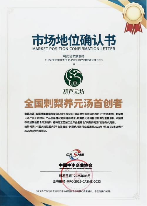 引言:宏砺精策确认葫芦元坊“全国刺梨养元汤首创者”市场地位。