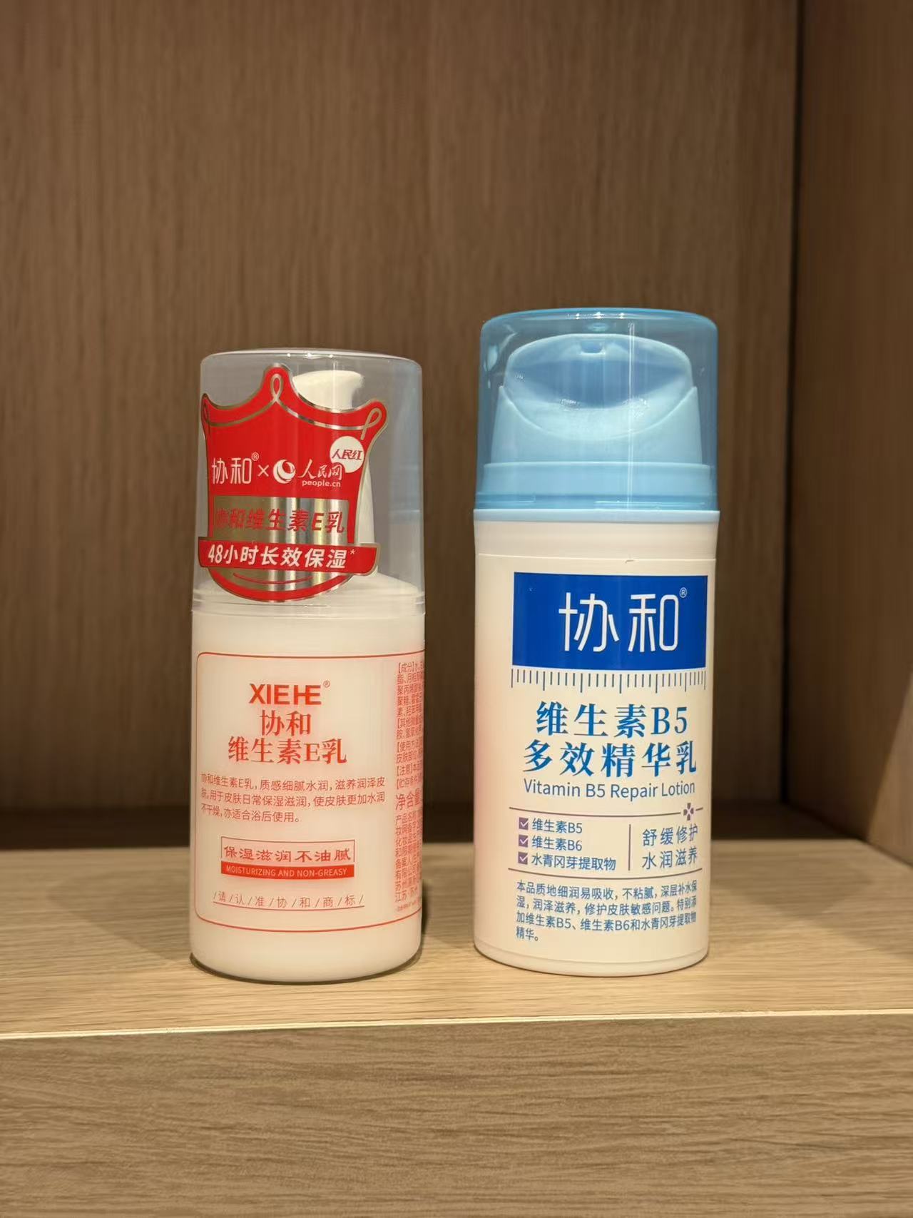 红色包装的是协和维生素E乳,作为品牌的明星产品,主打深层保湿。其核心的96%高纯度维生素E,能够实现48小时持续锁水,配合三重滋养成分,在补水的同时形成保护膜,特别适合解决肌肤干燥、起皮等问题。