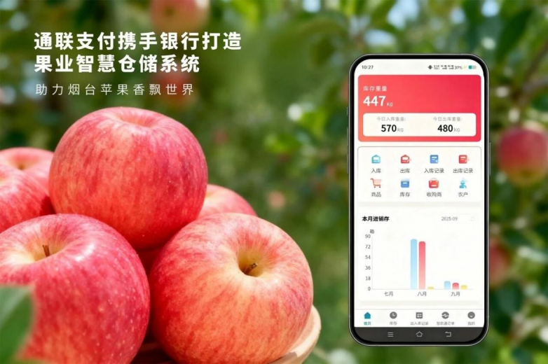 烟台作为中国苹果的重要生产基地,其产业规模对仓储管理提出了更高要求。针对传统冷库存在的信息不对称、操作繁琐等问题,通联支付与烟台当地农商行合作,在苹果产区推广“智慧仓储系统”,为果品冷链物流与库存管理提供数字化支持。