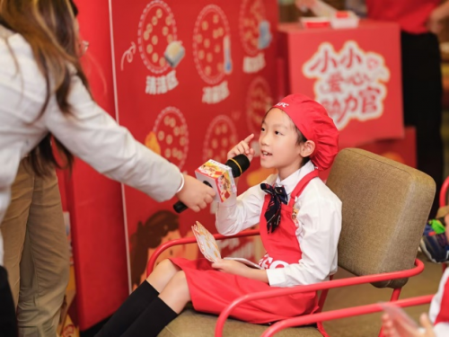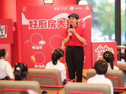 为了让公众更直观感受到乡村儿童营养改善需求,项目在百胜中国部分肯德基、必胜客餐厅开展主题活动,邀请小朋友实地参观餐厅后厨设备和环境,让他们直观了解厨房运作与食品安全标准。同时,工作人员向孩子们讲解“好厨房”的概念以及基础营养知识,让他们在趣味互动中接触到科学饮食理念。