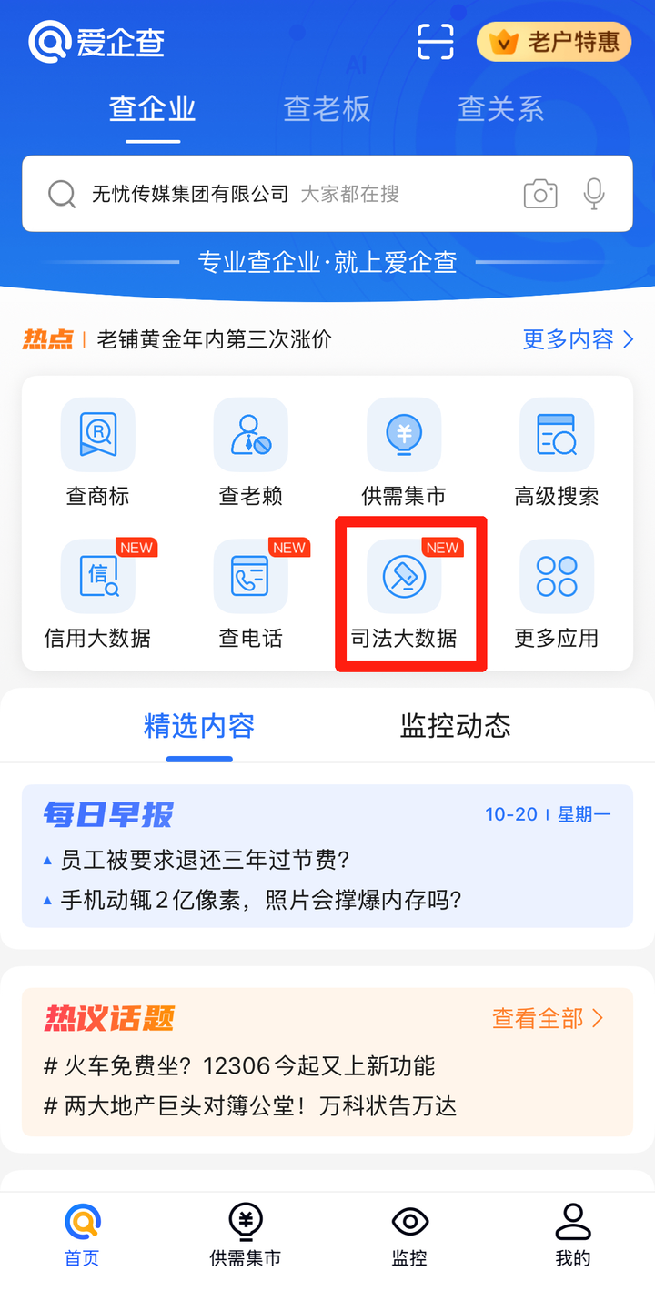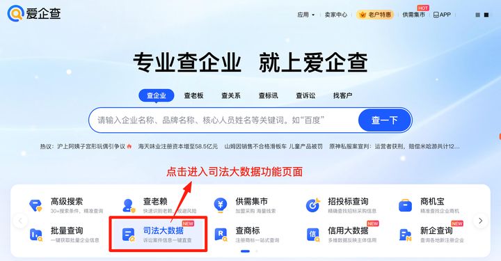目前,用户可通过多种路径使用爱企查 “司法大数据” 功能:登录爱企查官网或打开爱企查 APP,点击 “司法大数据” 入口即可进入服务页面。