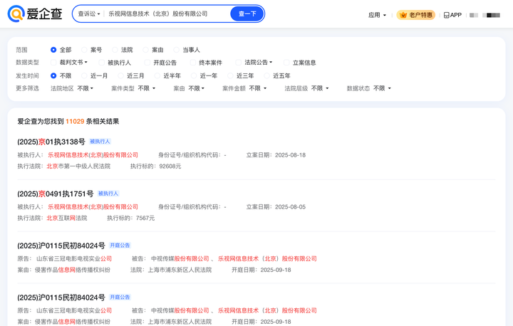 此外,爱企查 “司法大数据” 通过涉诉主体、案件核心、司法文书与公告、数据管理四大信息维度,为用户提供全场景精准司法信息服务,助力各类业务高效推进。服务页面提供多维度查询支持,涵盖「立案日期」、「执行法院」、「执行标的」、「案由」、「案件金额」等核心信息,满足精细化检索需求。