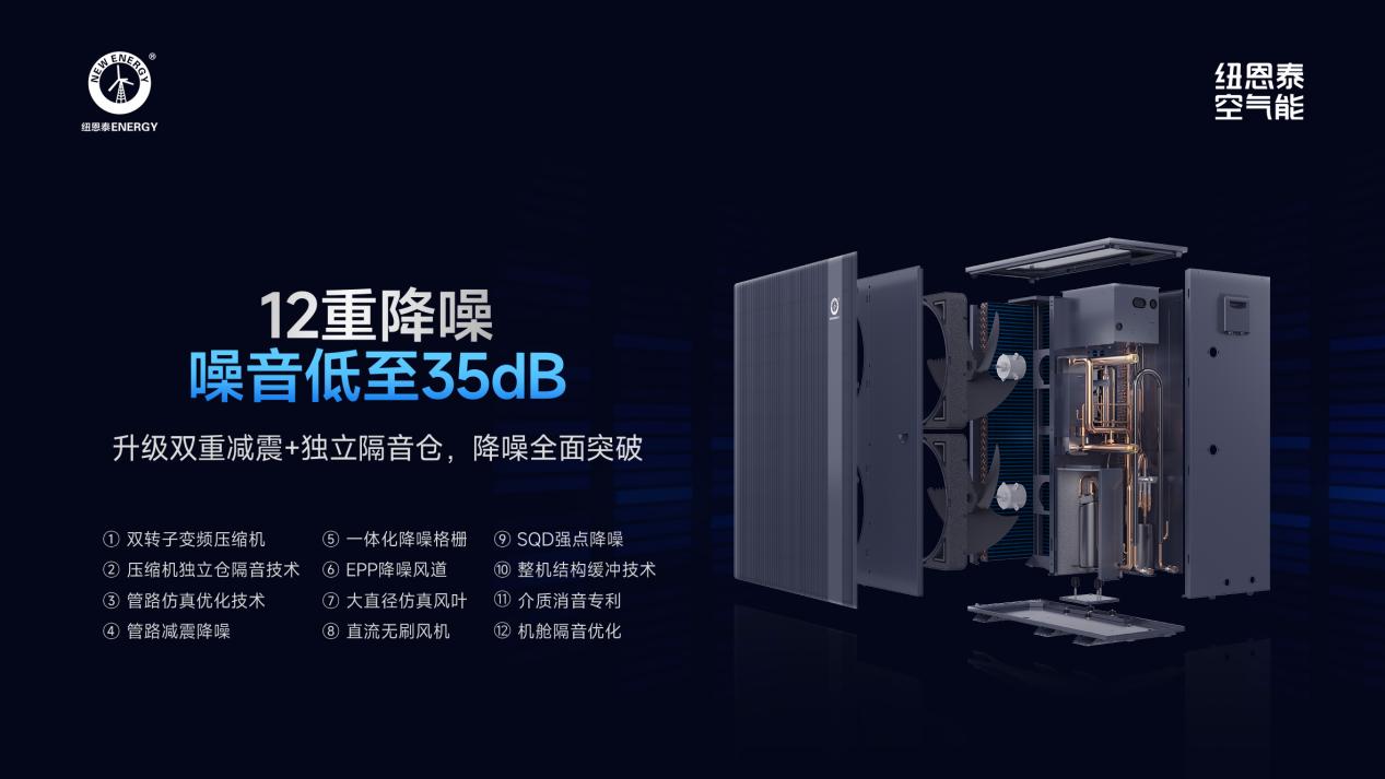 静谧环境是高端住宅的基本要求。纽恩泰产品通过12重降噪技术,将运行噪音控制在了35分贝左右,仅相当于两个人轻声交谈的音量。在2025年中国热泵展上,纽恩泰的“噪音实验室”吸引了众多观众现场体验,其“静如书房”的运行表现获得了行业专家的认可。