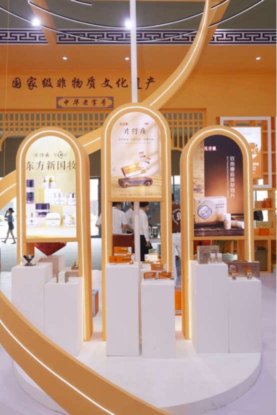 片仔癀公司展位位于会展中心主展区,整体设计以企业标志色彩为视觉主线,巧妙融合企业传统元素与现代美学,风格简约大气,彰显品牌格调。本次展会,片仔癀公司系统呈现了多元产品矩阵,主要展示片仔癀、片仔癀牌安宫牛黄丸、茵胆平肝胶囊等经典名药,更携一系列融汇中药智慧的化妆品与保健食品惊艳登场。这种全方位、立体化的产品布局,令到场观众沉浸式体验到一个更加立体、亲切的品牌形象。